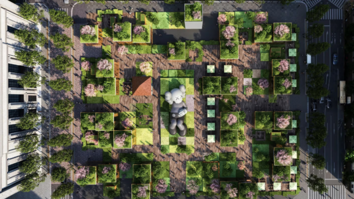 Central to the design is a large-scale sculptural installation by KAWS, anchoring the valley’s ecosystem while acting as a cultural landmark. Built-in modularity allows spaces to evolve organically, with lightweight, movable structures that can be rapidly assembled and disassembled—echoing principles of circular design.
